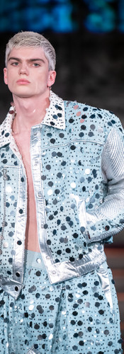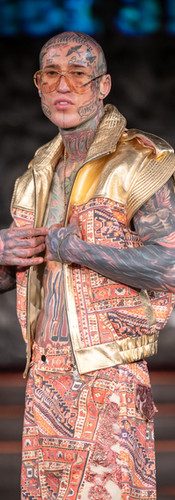 Set against the high-energy backdrop of Art Hearts Fashion, the runway became a study in disciplined sophistication. From the opening look, it was clear that Styler approached this season with clarity of vision. Clean lines dominated the collection, but they were softened by fluid fabrics and thoughtful layering. The silhouettes were deliberate—elongated coats, sharply tailored trousers, cinched waists, and sculpted shoulders that exuded authority without excess.